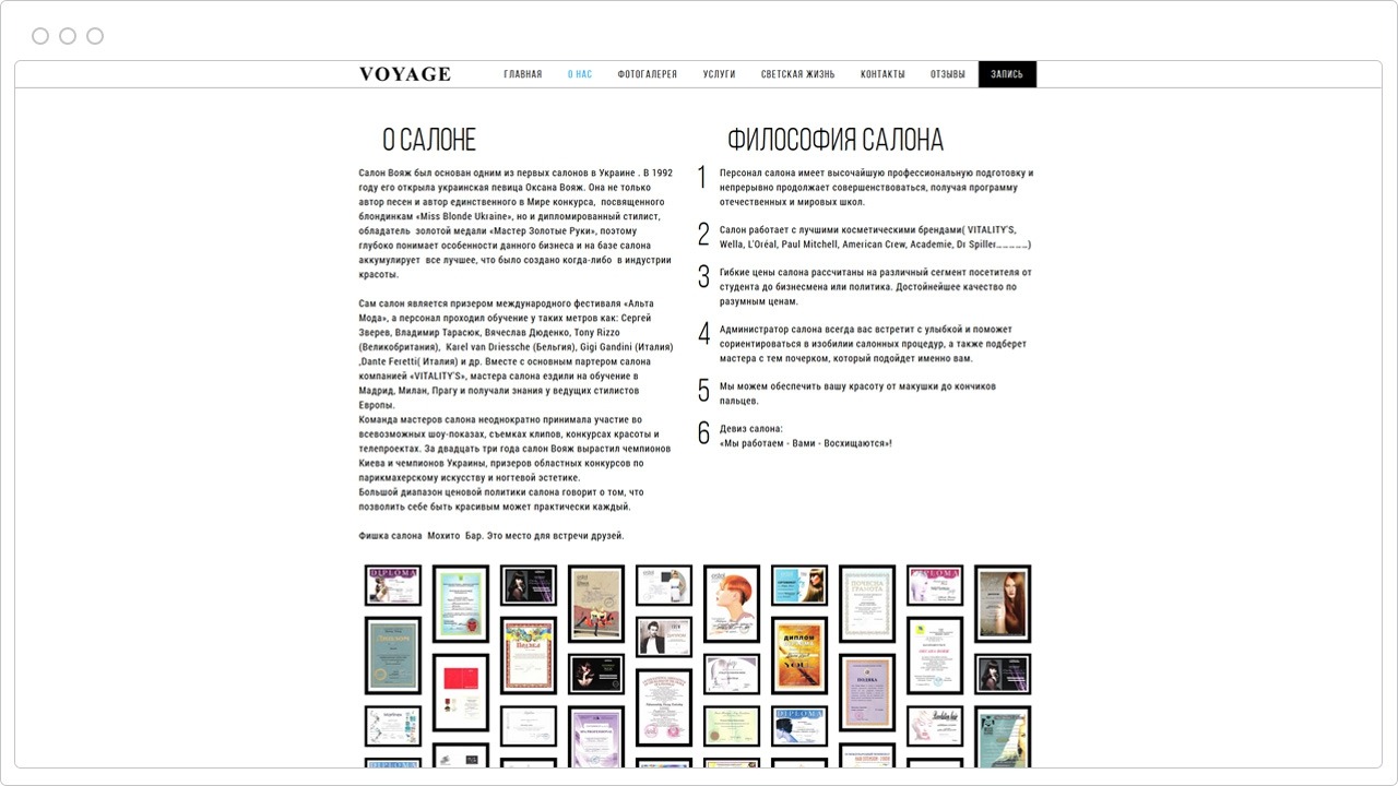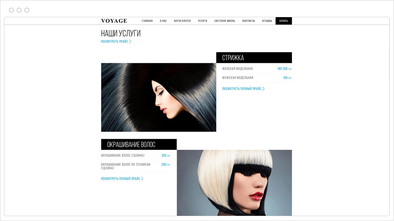 Салон краси "VOYAGE". Ми створили сайт, на якому можна подивитись послуги салона та записатися на прийом.